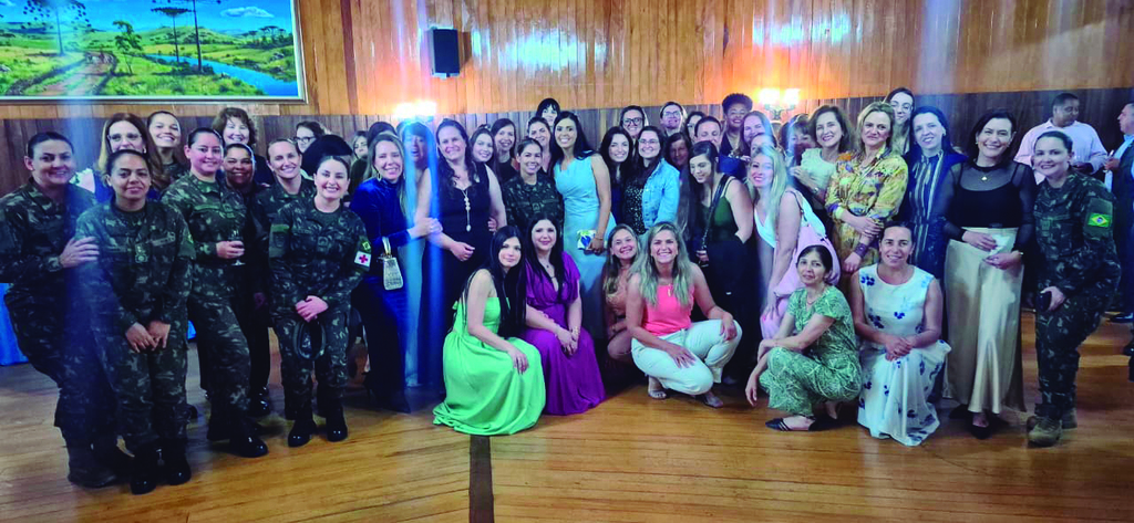 Durante a solenidade de troca de comando do 1º Batalhão Ferroviário (1º BFv) que ocorreu na noite de terça-feira (9), Dona Lelê, esposa do Tenente-Coronel Hudson Machado Moreira, registrou o encontro com suas amigas na cerimônia.