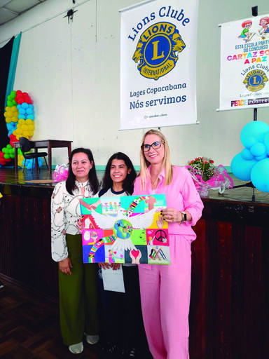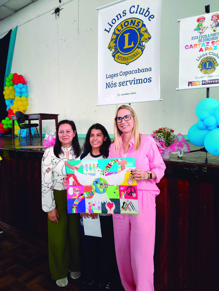 Manuella Zanotto Alves, da escola EEB Vidal Ramos Júnior, conquistou o 1° Lugar no concurso promovido pelo Lions Clube de Lages. A Manu apresentou um belo desenho sobre o tema “Juntos Somos Um” no cartaz da Paz.