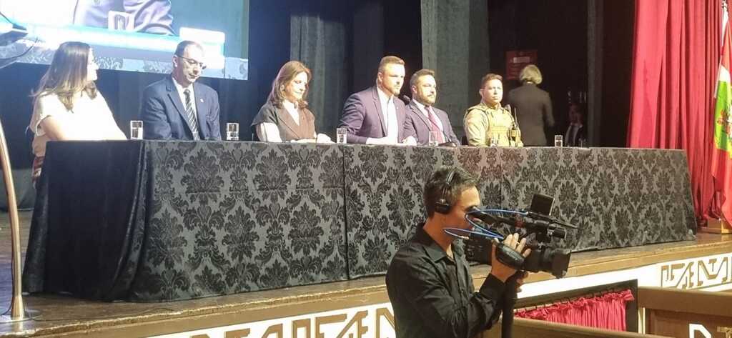 A sessão teve abertura oficial conduzida pelo deputado Lucas Neves, que convidou para compor a mesa autoridades como o comandante do 6º Batalhão da Polícia Militar, tenente-coronel Rangel; o deputado estadual Marcius Machado (PL); a prefeita Carmen Zanotto (Cidadania); o presidente da Câmara de Vereadores, Maurício Batalha; e a delegada regional Luciana Rodermel. O Hino Nacional foi executado pelo Coral da Orquestra Sinfônica de Lages, sob regência do maestro Joed Jeffer e acompanhamento do pianista Antônio Lugon. Em seguida, foi apresentado um vídeo institucional que resgatou a trajetória de Lages desde o século XVIII, destacando sua evolução até se firmar como uma das principais cidades catarinenses, com cerca de 165 mil habitantes e forte presença nos setores agropecuário, de serviços e turismo.