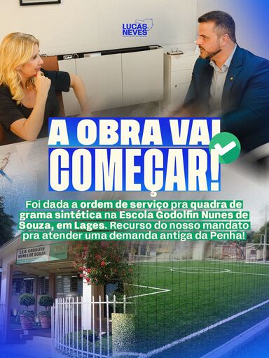 Acabei de sair da reunião com a secretária estadual de Educação, Luciane Ceretta. A obra vai sair do papel! Ordem de serviço assinada pra quadra com grama sintética na Escola Godolfin Nunes de Souza, em Lages. Recurso do nosso mandato atendendo uma demanda antiga da comunidade.