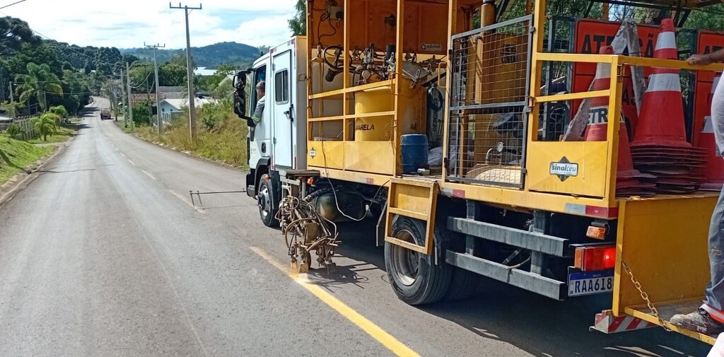 A Prefeitura de Lages intensificou as ações de melhoria na infraestrutura viária com a execução de sinalização horizontal em um dos principais acessos turísticos do município. O trabalho, coordenado pela Secretaria do Planejamento Urbano (Seplam) e realizado com o apoio de caminhão do Consórcio Intermunicipal Serra Catarinense (Cisama), contemplou aproximadamente sete quilômetros de extensão, no trecho que liga desde o acesso pela rodovia BR-282 até a região do Salto Caveiras, na localidade de Santa Terezinha do Salto.