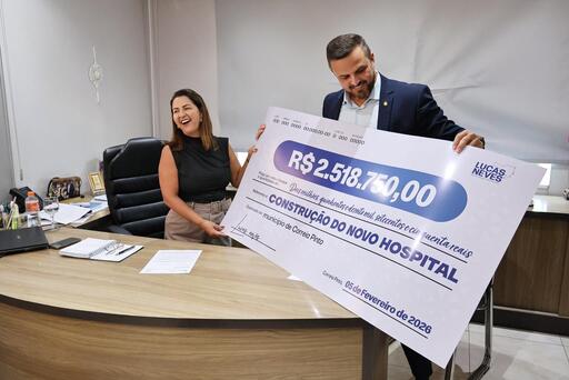 O deputado estadual Lucas Neves esteve nesta quinta-feira em Correia Pinto para oficializar, ao lado da prefeita Lúcia Ortiz, a entrega de um cheque simbólico no valor de R$ 2.518.750,00, recursos da emenda da Bancada da Serra destinados à construção do novo hospital municipal. O presidente da Câmara, Fabrício Madruga, e o vereador Felipe Moura, que fizeram o pedido ao deputado, também participaram do ato.