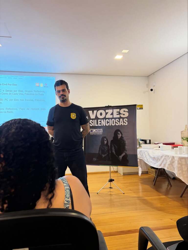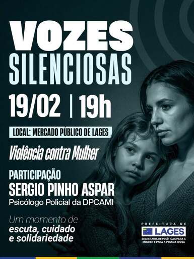 Na última quinta-feira (19), aconteceu a primeira edição de 2026 do projeto Vozes Silenciosas, no Mercado Público Municipal. A ação, que é uma política pública permanente da Prefeitura de Lages, por meio da Secretaria de Políticas para a Mulher e para a Pessoa Idosa, contou com a participação do psicólogo policial da nossa delegacia, Sérgio Pinho Aspar.