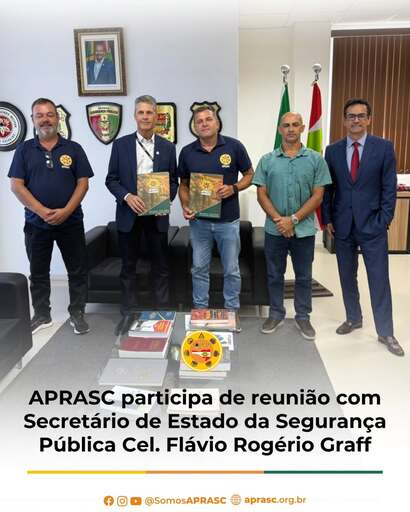 A Diretoria da APRASC agradece ao Secretário Cel. Flávio Rogério Graff e toda sua equipe pela postura colaborativa e disposição ao diálogo, fatores essenciais para o encaminhamento e avanço das pautas da categoria.