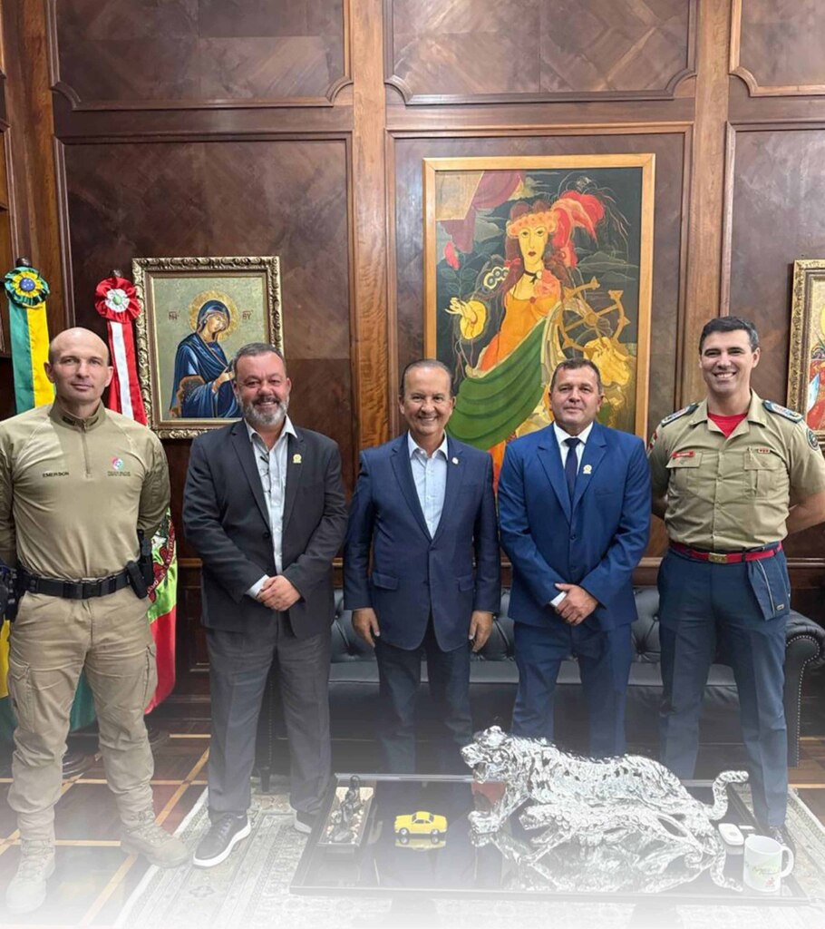Na tarde de hoje (16), a APRASC, representada pelo seu Presidente, 3º SGT BMRR Clailton de Oliveira, e pelo Vice-Presidente, 3º SGT PMRR João Sobrinho, esteve reunida com o Governador Jorginho Mello, acompanhado do Comandante-Geral da PMSC, Cel. Emerson Fernandes, e do Comandante-Geral do CBMSC, Cel. Fabiano de Souza.