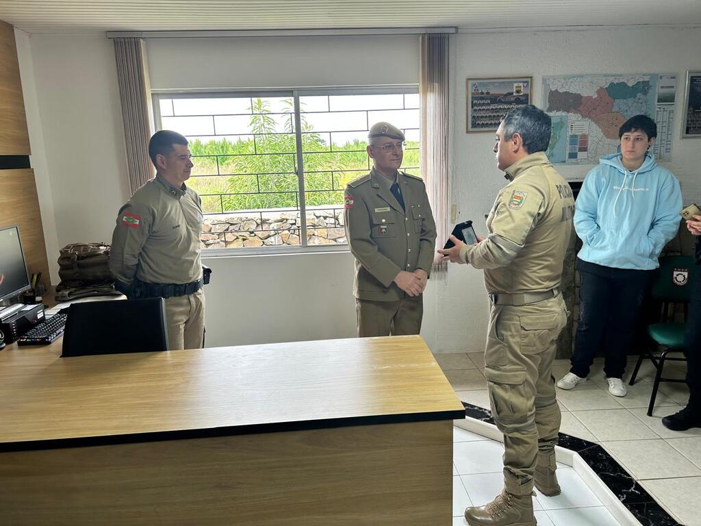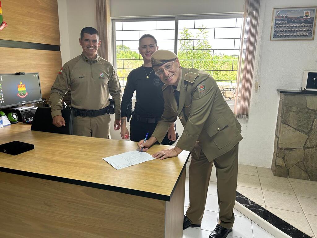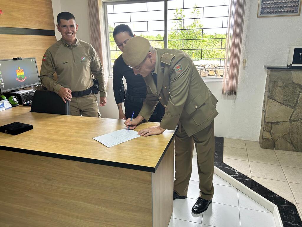 O Subtenente PM Fernando encerra sua carreira no serviço ativo da Polícia Militar, após 31 anos, 01 mês e 01 dia de serviços prestados à sociedade catarinense, assinando na presente data o requerimento de ingresso à reserva remunerada da PMSC, razão pela qual o comando da 2ª Cia PMRv, ST PM Israel, comandante do P10, acompanhados do efetivo operacional e administrativo, bem como familiares do militar, entregaram uma placa como uma merecida homenagem de agradecimento por todo empenho, dedicação e comprometimento com a segurança da sociedade catarinense durante todos esses anos, desejando-lhe saúde e felicidades nessa nova etapa de vida!