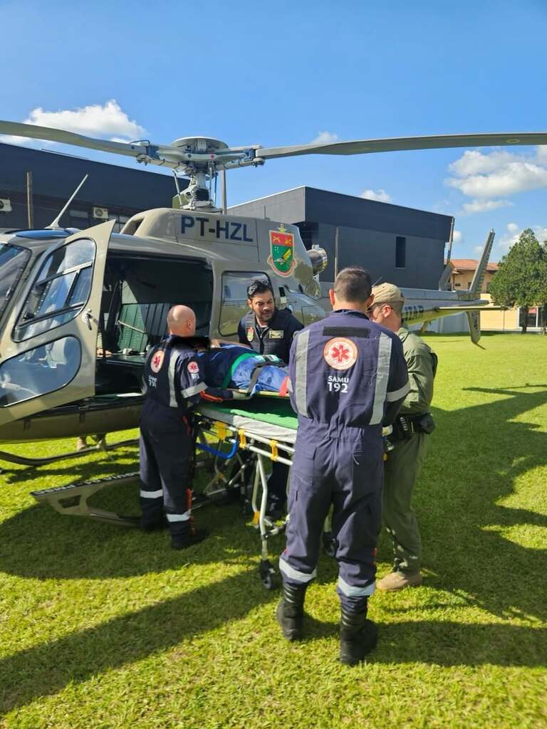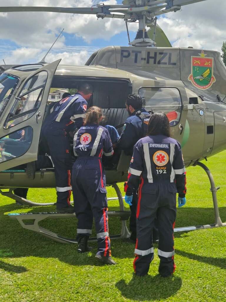 Na sequência, juntamente com o Serviço Aeromédico do SAMU, foi realizado o transporte de uma paciente vítima de AVC, de São Joaquim para Lages, garantindo agilidade, segurança e atendimento médico especializado durante todo o trajeto.