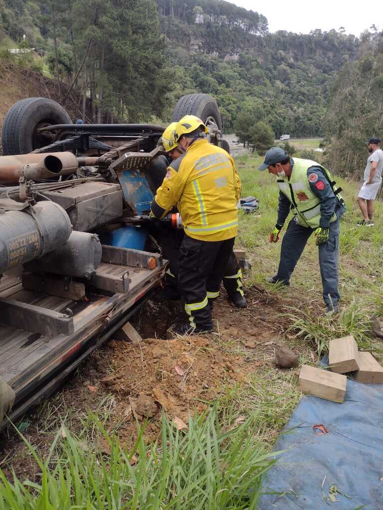 O Corpo de Bombeiros Militar de Bom Retiro foi acionado por volta das 14h32 para atender a ocorrência, deslocando as viaturas ASU-601 e ABTR-189 até o local. Quando a guarnição chegou, a equipe do Samu de Alfredo Wagner já prestava apoio na cena. O condutor foi encontrado em óbito, totalmente preso sob o caminhão, sem possibilidade de acesso imediato.