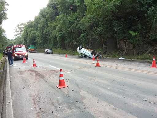 Bombeiros atendem colisão em rocha, seguido de capotamento na BR-116 em Ponte Alta