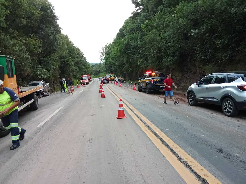 Um grave acidente de trânsito foi atendido pelo Corpo de Bombeiros Militar de Correia Pinto na tarde de 25 de dezembro de 2025, por volta das 17h34, na BR-116, km 210, em Ponte Alta. A ocorrência envolveu uma saída de pista com capotamento seguida de colisão frontal entre dois veículos, mobilizando as viaturas ASU-482 e ABTR-126, acionadas via COBOM.