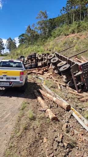 Um caminhão carregado com toras de madeira tombou no final da manhã desta terça-feira (4), no km 413,4 da SC-110, em São Joaquim, na Serra Catarinense. O acidente resultou apenas em danos materiais, sem feridos. A pista permaneceu liberada durante todo o atendimento da ocorrência.