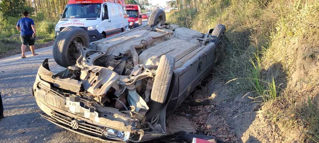 Capotamento deixa cinco vítimas na Estrada Geral da Vila Aparecida, em Otacílio Costa
