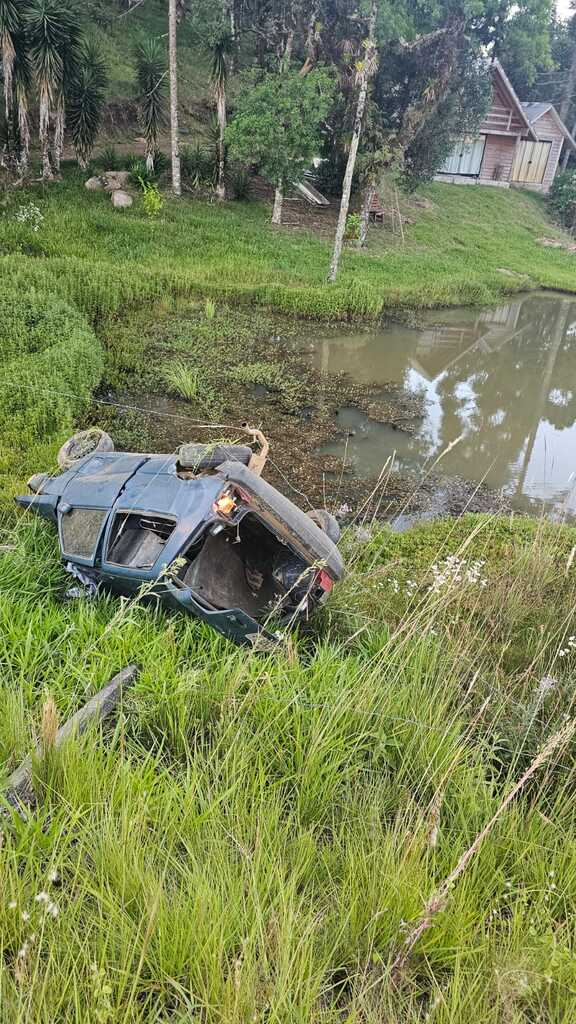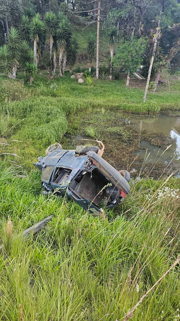 Capotamento na SC-390 deixa condutor gravemente ferido em Anita Garibaldi