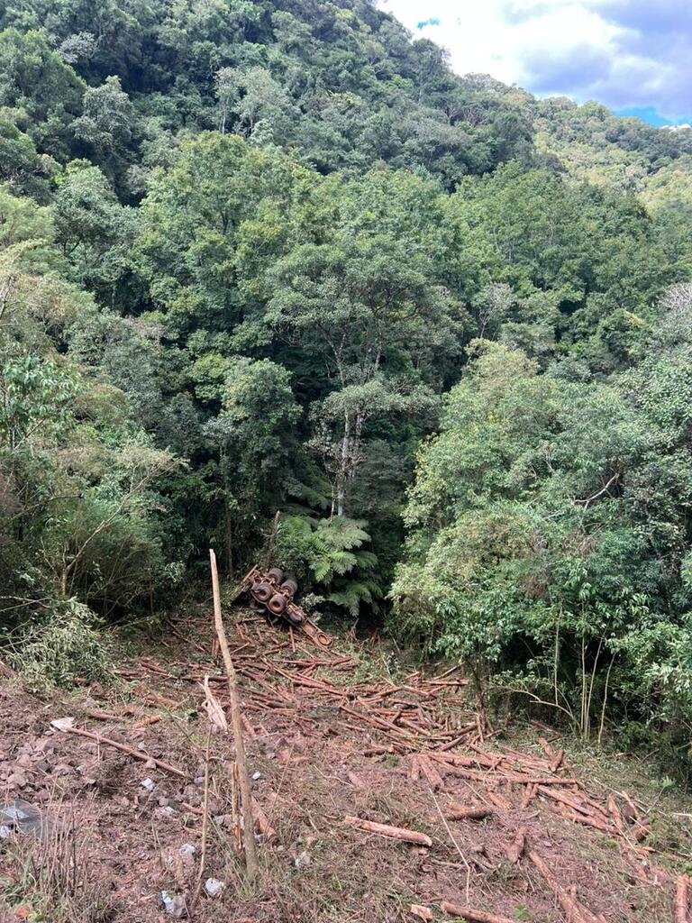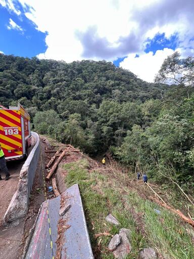 De acordo com informações da OBM de Santa Cecília, as viaturas ASU-571 e ABTR-59 foram acionadas para atender a ocorrência. No local, os socorristas encontraram uma carreta carregada com toras de madeira que saiu da pista e caiu em um desnível de aproximadamente 50 metros, espalhando a carga pela vegetação.