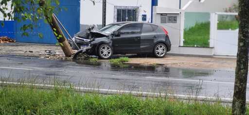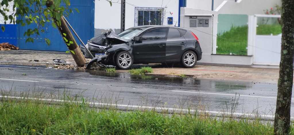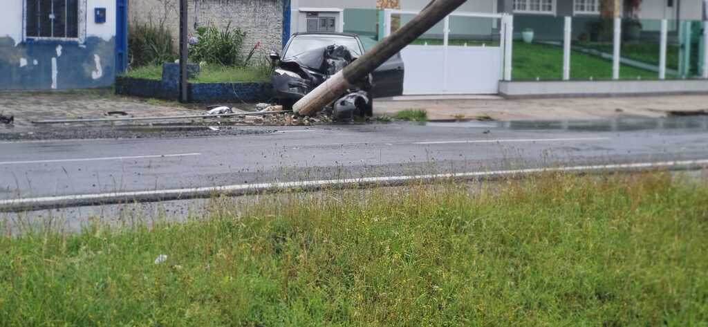 Carro colide contra poste, derruba fiação elétrica e deixa motorista ferido em Lages