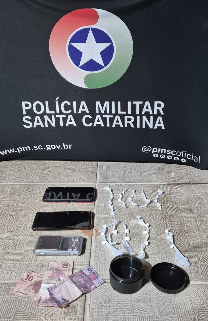 Dentro da residência estavam um homem e uma mulher. Durante a abordagem, foram apreendidos 14 invólucros de cocaína, 22 pedras de crack, além de uma balança de precisão e uma quantia em dinheiro.