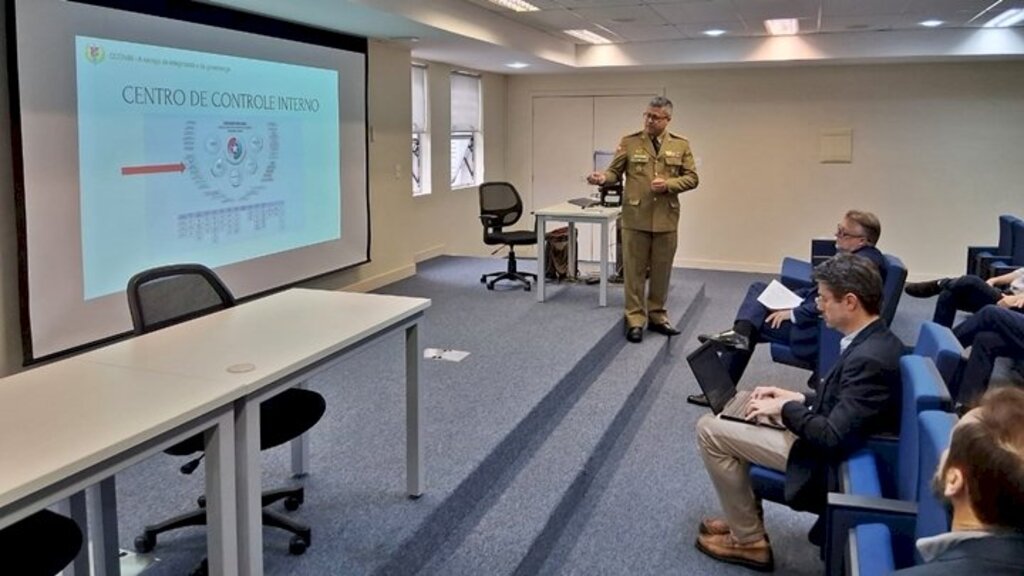 Durante a exposição, o coronel Adair Alexandre Pimentel, controlador-geral do CCONIN, apresentou a estrutura e as competências da unidade, responsável pela defesa do patrimônio público, controle interno, auditoria, correição, prevenção e combate à corrupção, ouvidoria e promoção da transparência da gestão no âmbito da Polícia Militar. Ele também mostrou dados estatísticos relacionados à gestão de pessoal, licitações e compras, transferência de recursos, despesas de custeio, gestão patrimonial e ouvidoria, entre outros.