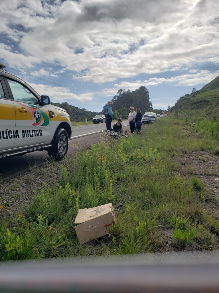 Um acidente de trânsito com vítima não fatal foi registrado no km 242,700 da SC-114, em Painel-SC, envolvendo um HB20 e uma bicicleta. A ocorrência mobilizou a PMRv após acionamento por um motorista.