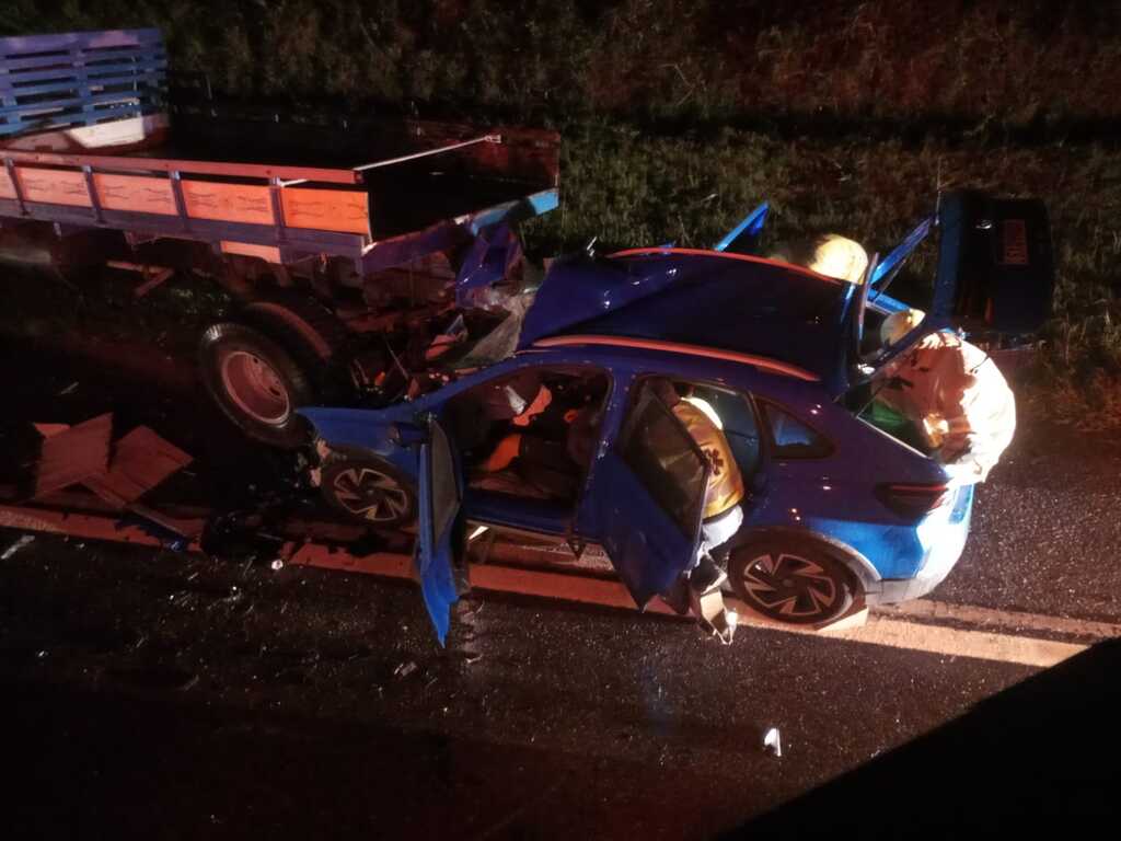 Um acidente de trânsito do tipo colisão traseira entre um VW Nivus e um caminhão Chevrolet, com placas de Camboriú, deixou um jovem de 20 anos ferido e mobilizou equipes de resgate em Bom Retiro.