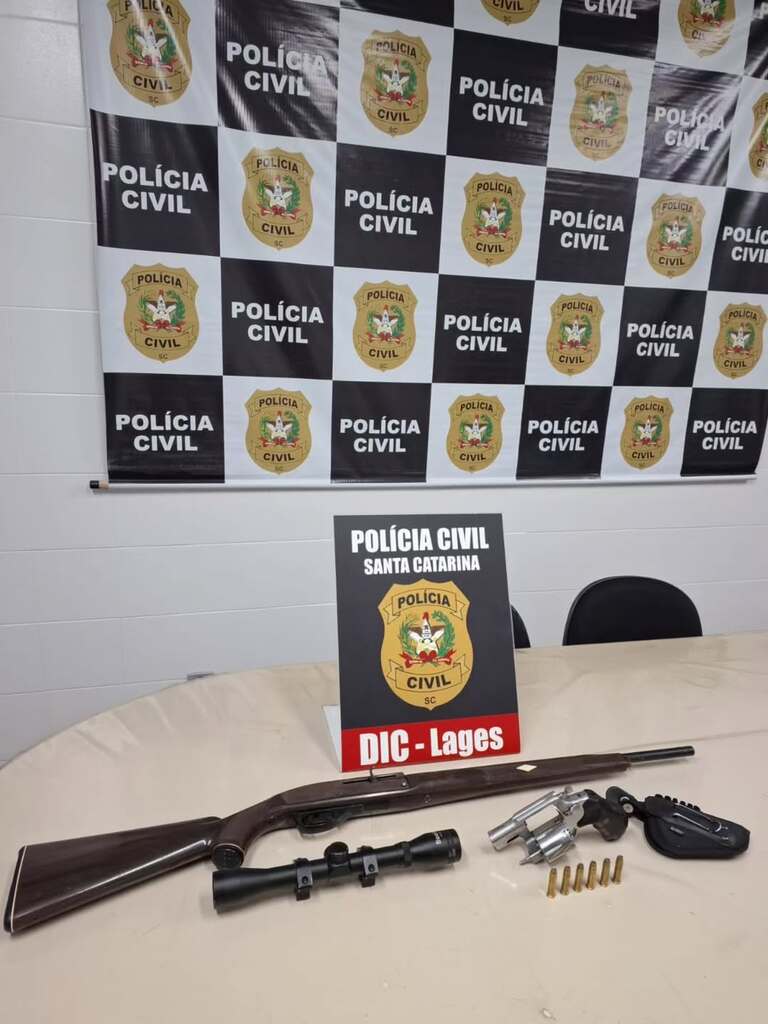 Durante o cumprimento das prisões, foram apreendidas armas de fogo que estavam na posse dos investigados, sendo um revólver e uma arma longa (espingarda).