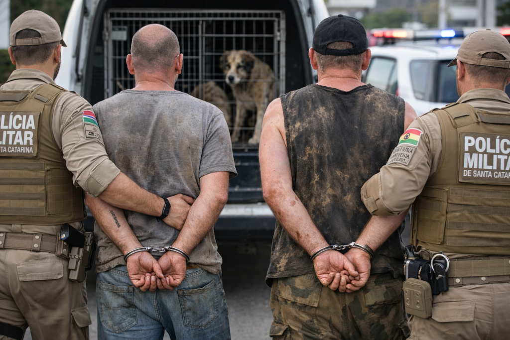 Dois homens foram presos pela Polícia Militar pelo crime de maus-tratos a animais após uma denúncia atendida em uma residência no bairro São Miguel, em Lages.