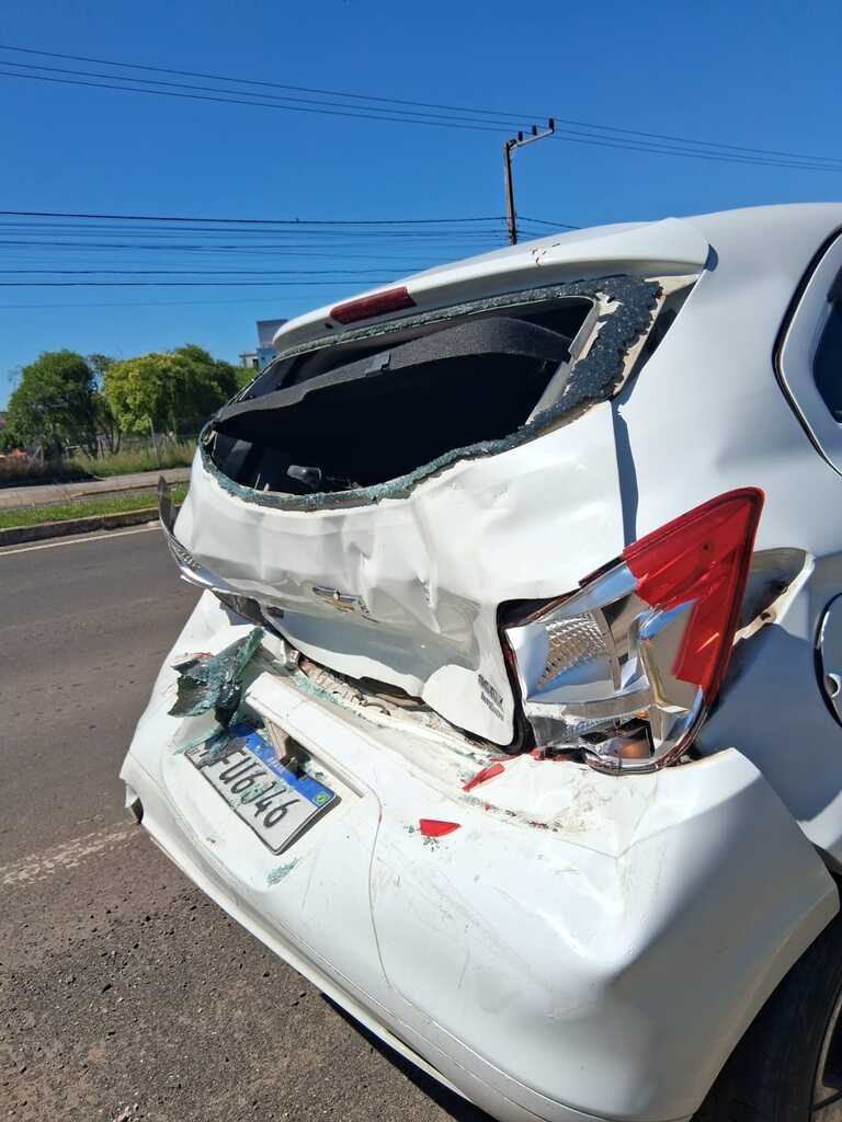 Um acidente de trânsito envolvendo três veículos foi registrado na quarta-feira (17) na avenida Dom Pedro II, no bairro Universitário, em frente ao Sesc. Uma carreta colidiu na traseira de um Chevrolet Onix, que acabou sendo projetado contra uma Montana que estava parada sobre a faixa de pedestres. O impacto mobilizou equipes de resgate e causou transtornos no tráfego da região.