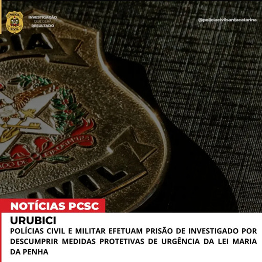 A Polícia Civil, por meio da Delegacia de Polícia de Urubici, com apoio da Polícia Militar, prendeu em flagrante, na tarde desta segunda-feira (19), um homem investigado por descumprir medidas protetivas de urgência previstas na Lei Maria da Penha, no município de Urubici. A ação ocorreu após a confirmação de que o suspeito estava na residência, apesar das restrições judiciais em vigor.