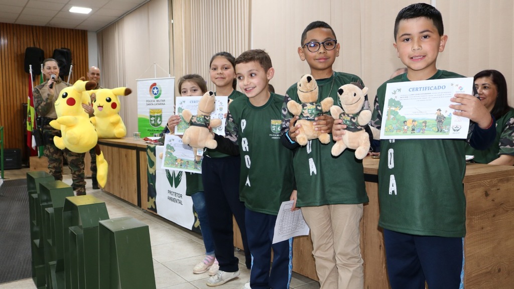 A Polícia Militar de Santa Catarina (PMSC), por meio da Polícia Militar Ambiental (PMA), realizou nesta segunda-feira, 3, a formatura dos 30 novos protetores ambientais (Proa) Crianças, em São Joaquim. A solenidade aconteceu na Casa Cultural do município.