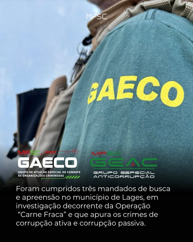 A investigação é conduzida pelo Ministério Público de Santa Catarina e decorre de provas localizadas no contexto da Operação Carne Fraca, a partir da análise de dados telefônicos e telemáticos regularmente autorizados pelo Poder Judiciário, envolvendo o ex-diretor do Presídio Masculino de Lages, investigado também em outras apurações de grande complexidade na comarca.