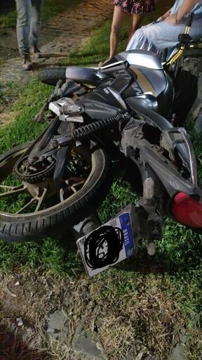No local, os bombeiros constataram que a motocicleta Honda Titan era conduzida por um homem de 27 anos, encontrado em decúbito dorsal, sem capacete, consciente e relatando fortes dores na região lombar. A vítima apresentava ainda a amputação do dedo anelar do pé direito, o que exigiu atendimento imediato e cuidados específicos por parte da equipe de resgate.