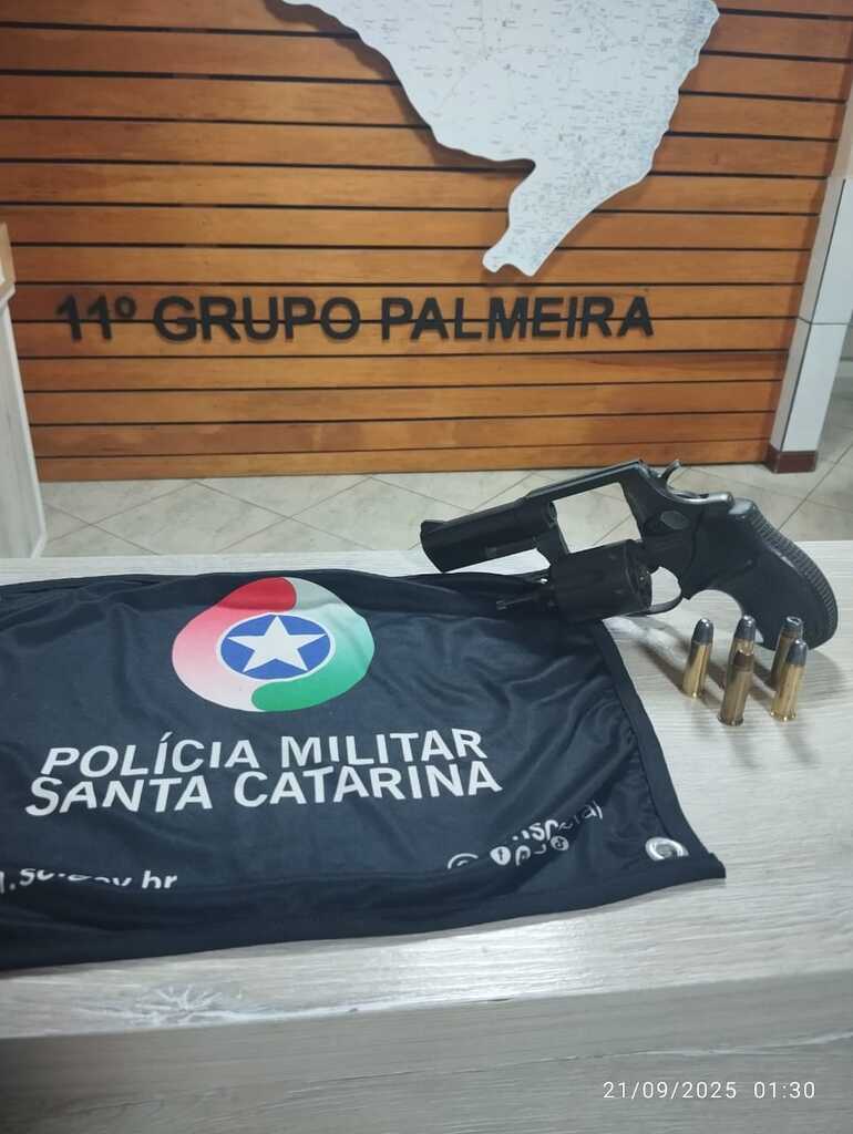 Na madrugada deste domingo (21), por volta de 00h36, a Polícia Militar Rodoviária (PMRv) prendeu um homem de 36 anos por porte ilegal de arma de fogo na SC-114, no km 202, em Palmeira, na Serra Catarinense.