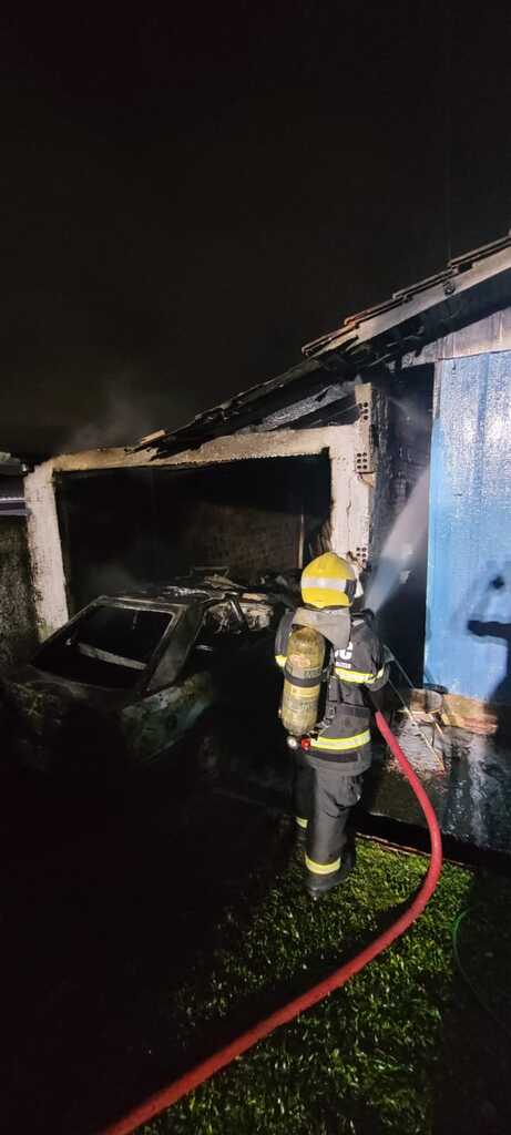 Na noite desta quarta-feira (1º de outubro), por volta das 19h40, bombeiros foram acionados para atender a um incêndio na Rua José Lauri de Souza, bairro Passo Fundo, em Lages. O fogo começou em um veículo Ford Scort que estava estacionado dentro da garagem de alvenaria e se alastrava em direção à residência de madeira anexa.