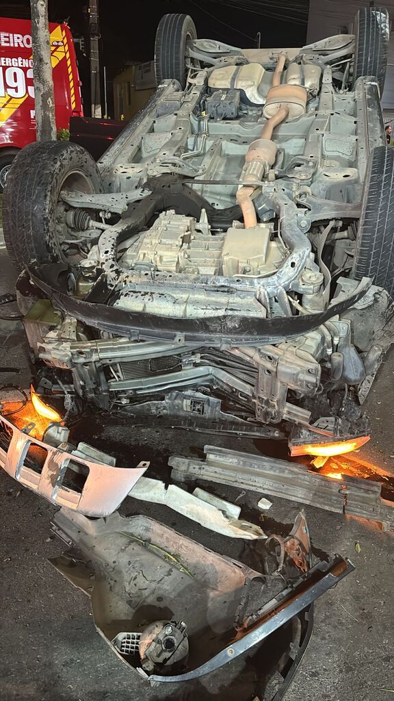 Segundo os Bombeiros, o motora perdeu o controle do possante, capotou e ainda derrubou um coqueiro do canteiro central. A árvore caiu no meio da avenida, obrigando a equipe a fazer o corte e a remoção. Pra completar o estrago, a caranga deixou óleo e outros fluidos espalhados pela pista, fazendo com que os bombeiros jogassem serragem e limpassem tudo direitinho pra evitar novos acidentes. Os pedaços do carro também foram recolhidos.