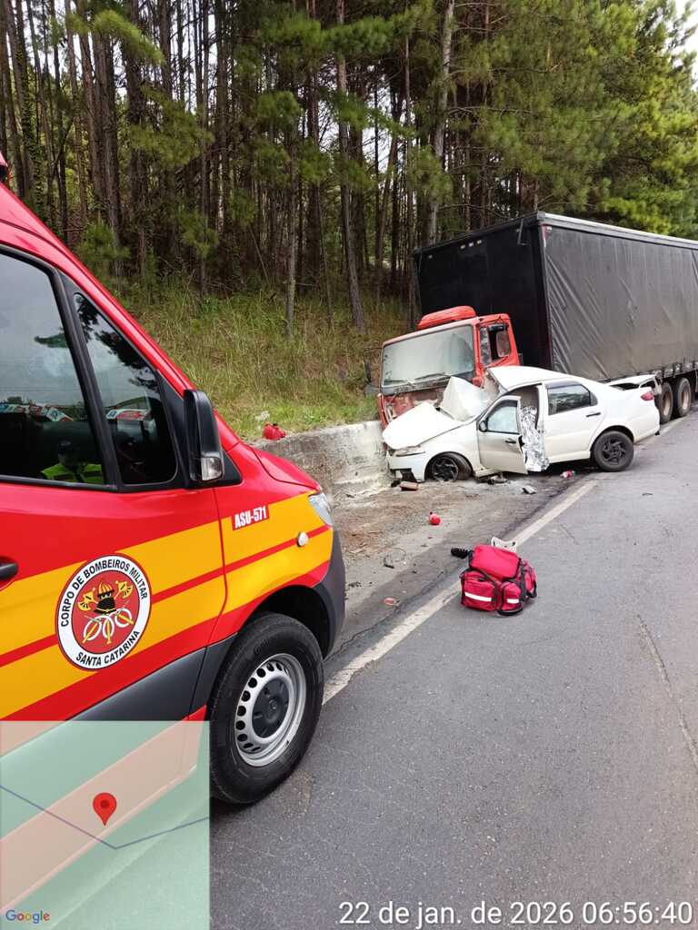 Motorista morre em colisão entre carro e caminhão na SC-350, em Santa Cecília
