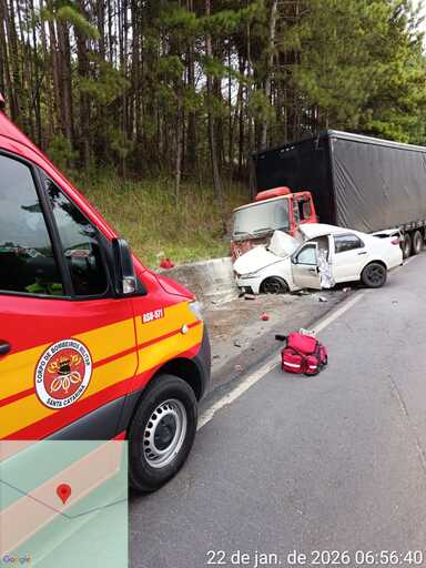 De acordo com o Corpo de Bombeiros Militar de Santa Catarina, a ocorrência foi atendida por equipes da OBM de Santa Cecília, com as viaturas ASU-571 e ABTR-59, acionadas por volta das 6h43. No local, foi constatada uma colisão fronto-lateral direita entre os veículos.