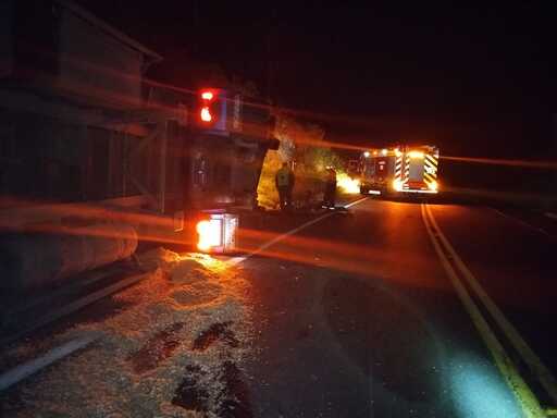 O Corpo de Bombeiros Militar de São Joaquim foi acionado por volta das 19h49 e deslocou as viaturas ABTR-78 e ASU-566 para o atendimento da ocorrência. Ao chegarem ao local, as guarnições encontraram uma carreta Scania, de cor azul, fora da pista de rolamento, com o condutor preso às ferragens e já sem sinais vitais.