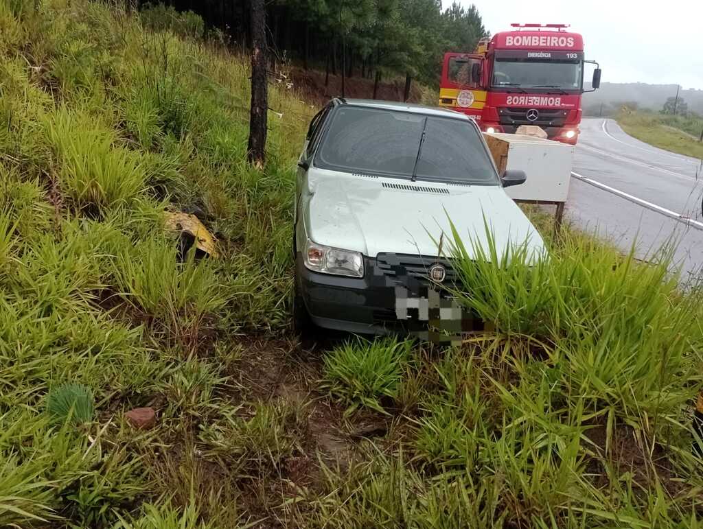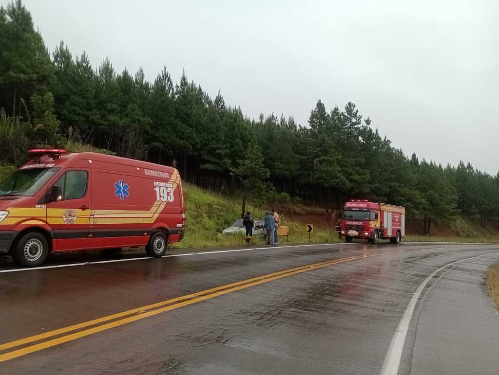 Uma mulher de 42 anos ficou ferida após o veículo em que estava sair da pista na manhã de 12 de fevereiro, na rodovia SC-390, no bairro Lagoa Estiva, em Anita Garibaldi. O acidente foi atendido por equipes do Corpo de Bombeiros Militar por volta das 8h36.