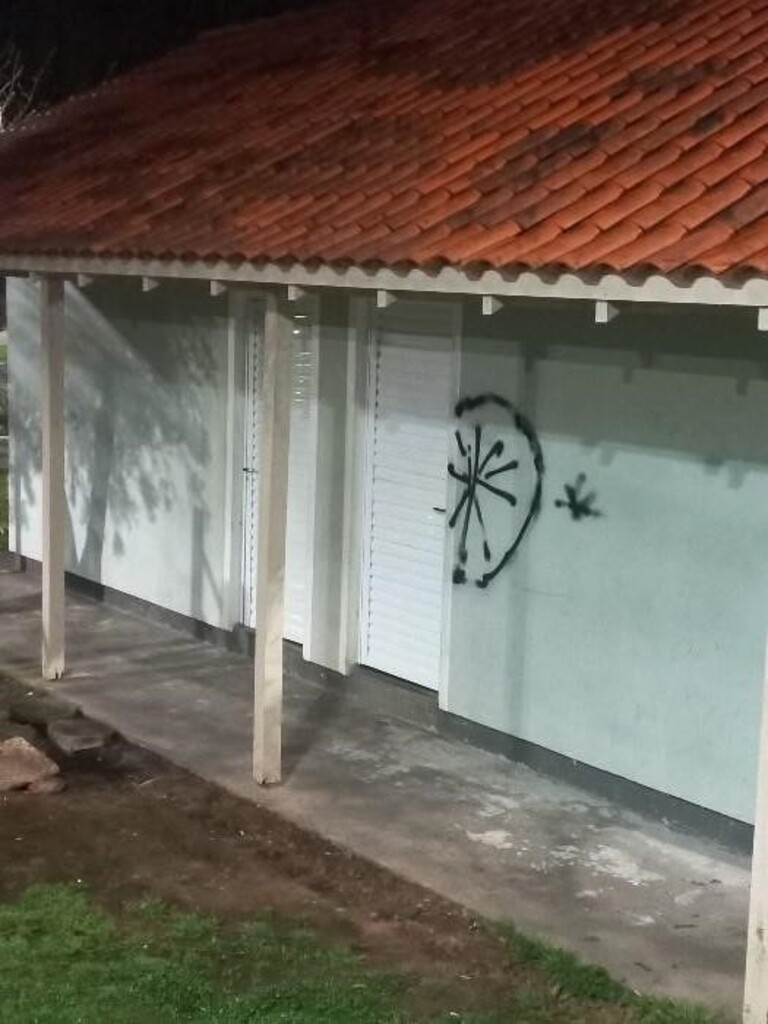 A Polícia Militar flagrou um homem de 20 anos praticando pichação em um banheiro público do Parque Jonas Ramos, conhecido como Tanque, na madrugada desta sexta-feira (10), em Lages.