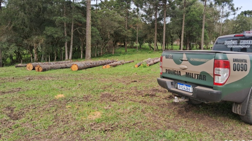 A Polícia Militar de Santa Catarina (PMSC), por meio do Comando de Polícia Militar Ambiental (CPMA), atendeu neste sábado, 25, uma ocorrência de desmatamento ilegal na localidade de Rancho de Tábuas, interior do município de Lages, após denúncia que relatava o corte de diversas araucárias e vegetação nativa.