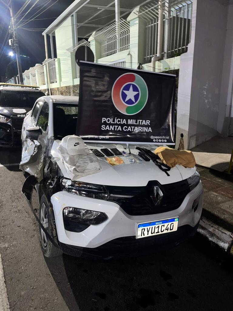 A Polícia Militar de Lages prendeu, na noite de terça-feira, quatro jovens suspeitos de assaltar um motorista de aplicativo e roubar o veículo Renault Kwid que ele utilizava. O crime ocorreu nas proximidades da Avenida Papa João XXIII. Minutos após o alerta do COPOM, o carro foi encontrado acidentado na Rua Belisário Ramos, no bairro Vila Nova, o que levou à fuga dos suspeitos a pé.