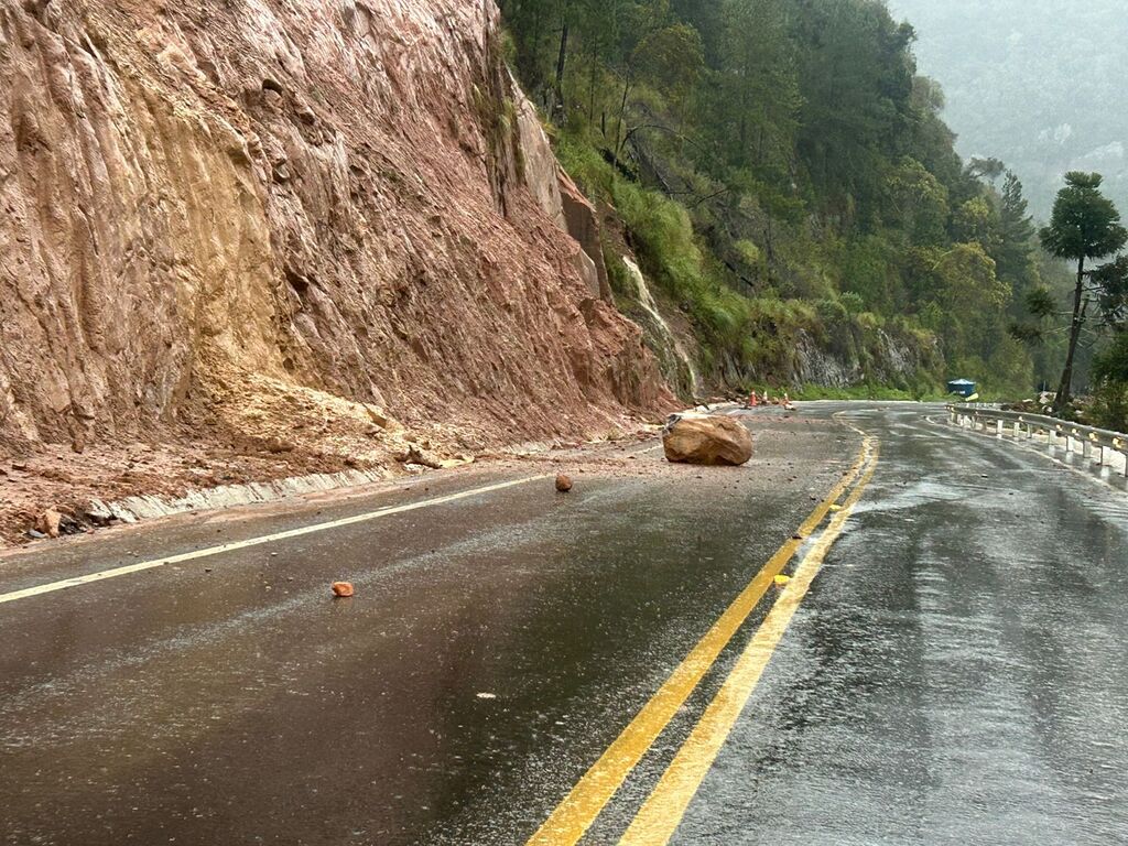 Na manhã desta segunda-feira (22), por volta das 6h, a Polícia Militar Rodoviária registrou a queda de rochas sobre a rodovia SC-110, na Serra do Avencal, em Urubici, no sentido São Joaquim. O deslizamento provocou o bloqueio parcial da pista.