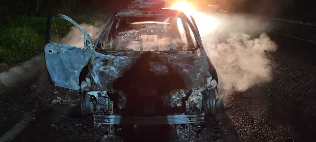 Um veículo foi completamente destruído por um incêndio na tarde deste domingo (5), na BR-470, km 204, na localidade de Serra dos Pires, em Ponte Alta. Apesar dos danos materiais, ninguém ficou ferido.