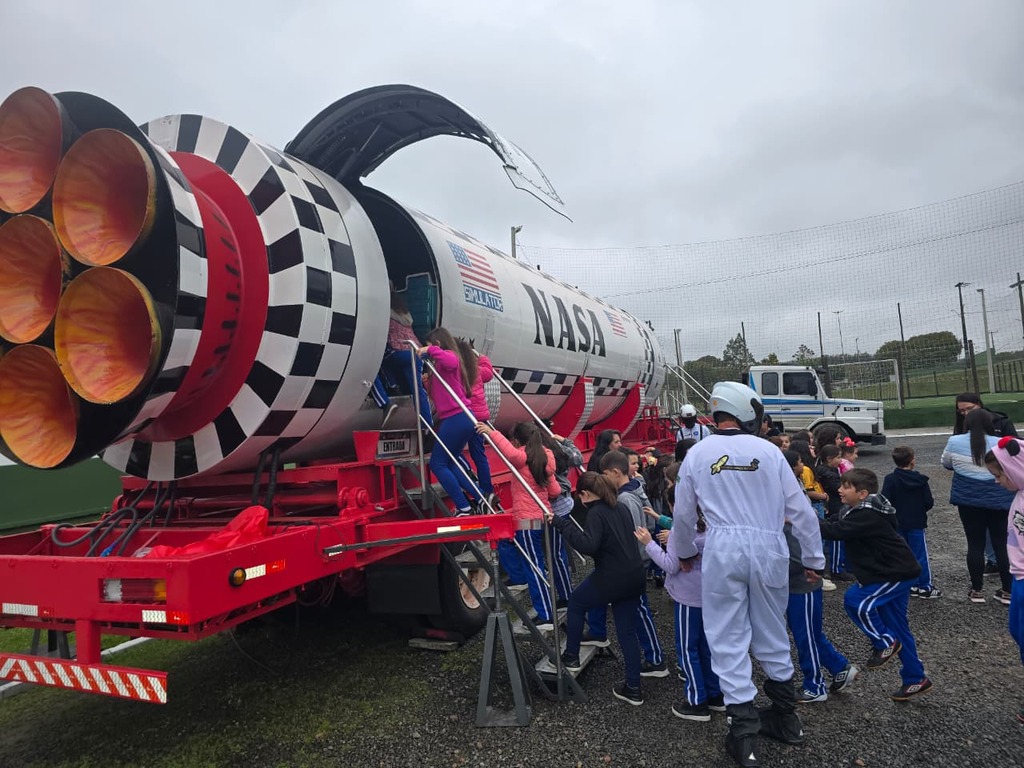 Alunos da Rede Municipal de Ensino de Otacílio Costa estão participando do projeto Space Motion, que proporciona uma experiência imersiva no universo por meio de um simulador em formato de foguete. A atração está instalada em frente ao Ginásio de Esportes Nelson Melo de Liz, no bairro Poço Rico.