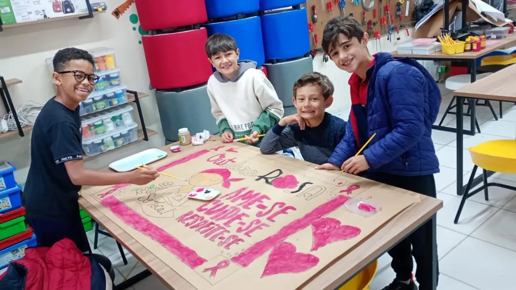 A Prefeitura Municipal de Rio Rufino, por meio do Prefeito Ademar e da Secretaria de Educação, destacou a ação do 3º Ano A da Escola Rosa Copetti Costa em alusão ao Outubro Rosa. Sob orientação da professora Katiusce, os alunos confeccionaram cartazes especiais com carinho e dedicação, reforçando a importância da prevenção ao câncer de mama.