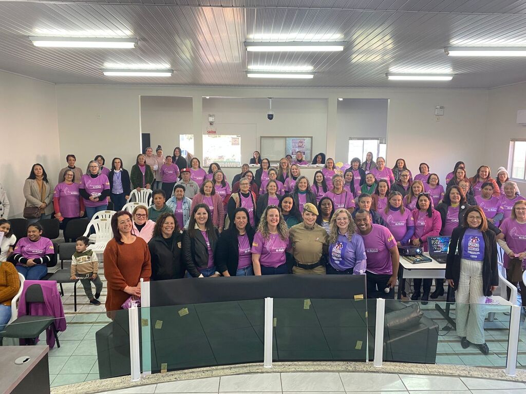O evento contou com a participação de duas palestrantes: Suzana Duarte, secretária de Políticas para as Mulheres do município de Lages, que trouxe reflexões sobre a rede de apoio e os direitos das mulheres, e a policial Rubia, responsável pelo atendimento em Painel, que apresentou orientações práticas sobre os canais de denúncia e a atuação da segurança pública nos casos de violência doméstica.