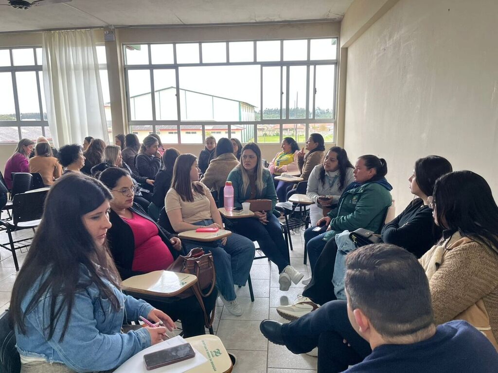 Na manhã desta segunda-feira, 15 de setembro, o encontro foi realizado na Escola Elza Deeke, reunindo cerca de 70 servidores das duas cidades, entre médicos, enfermeiros, psicólogos, fisioterapeutas, técnicos em enfermagem, agentes comunitários de saúde e de endemias, além de estagiários dos cursos de Enfermagem e Psicologia.