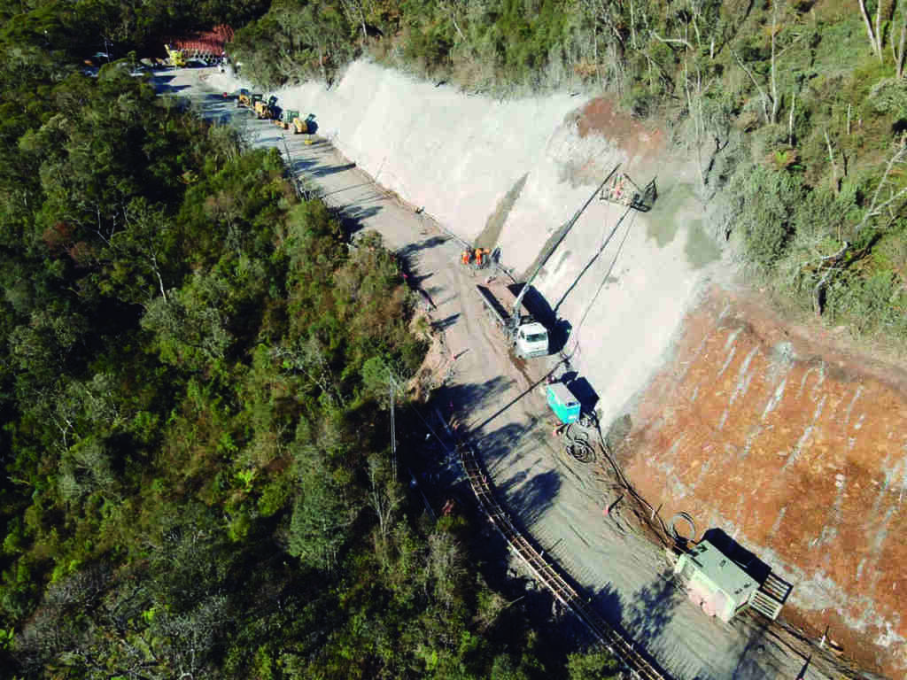 Perfuração para execução de solo grampeado e tela de alta resistência em outros 2 pontos da serra.