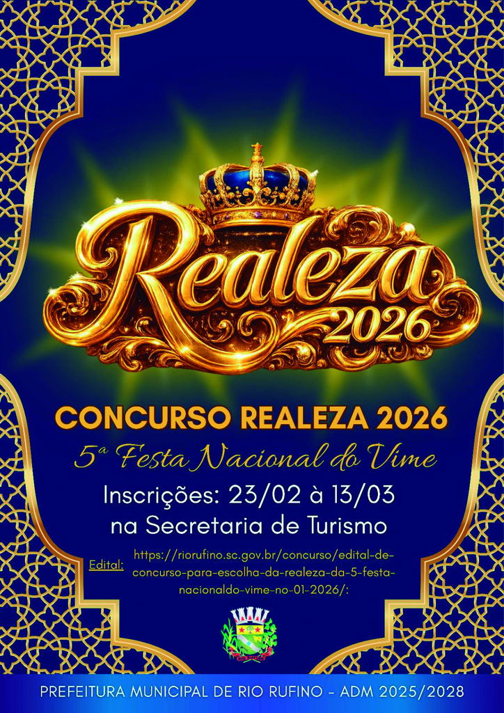 A Rio Rufino já vive o clima de expectativa para um dos eventos mais tradicionais do município. A Prefeitura de Rio Rufino anunciou a abertura das inscrições para o Concurso Realeza 2026 da 5ª Festa Nacional do Vime, que irá eleger as representantes oficiais da festa.