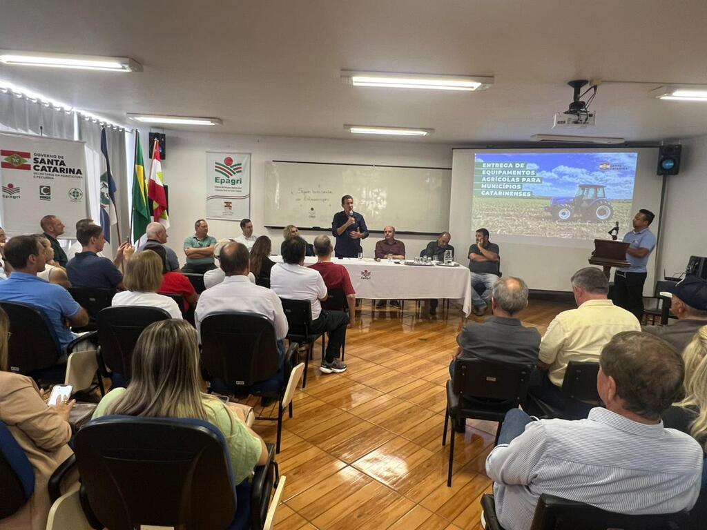 A cerimônia de entrega ocorreu em Campos Novos, na Gerência Regional da Epagri. Coube à Secretaria da Agricultura a condução do processo licitatório e a aquisição dos equipamentos, que incluem balanças bovinas, carretas agrícolas basculantes, colhedoras de forragem, distribuidores de adubo (líquido e seco), além de enxadas rotativas, grades aradoras e niveladoras, roçadeiras e tratores agrícolas de 105 cavalos de potência.