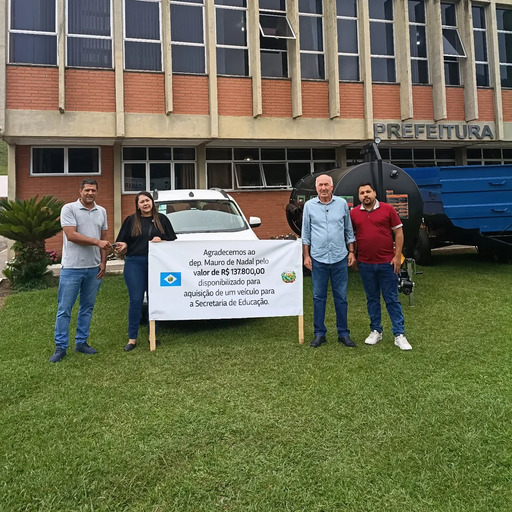 A Prefeitura Municipal de Rio Rufino, por meio do Prefeito Ademar e da Secretaria Municipal de Educação, recebeu recursos no valor de R$ 137.800,00, viabilizados por meio de emenda parlamentar do Deputado Mauro de Nadal, destinados à aquisição de um veículo para a Secretaria de Educação.